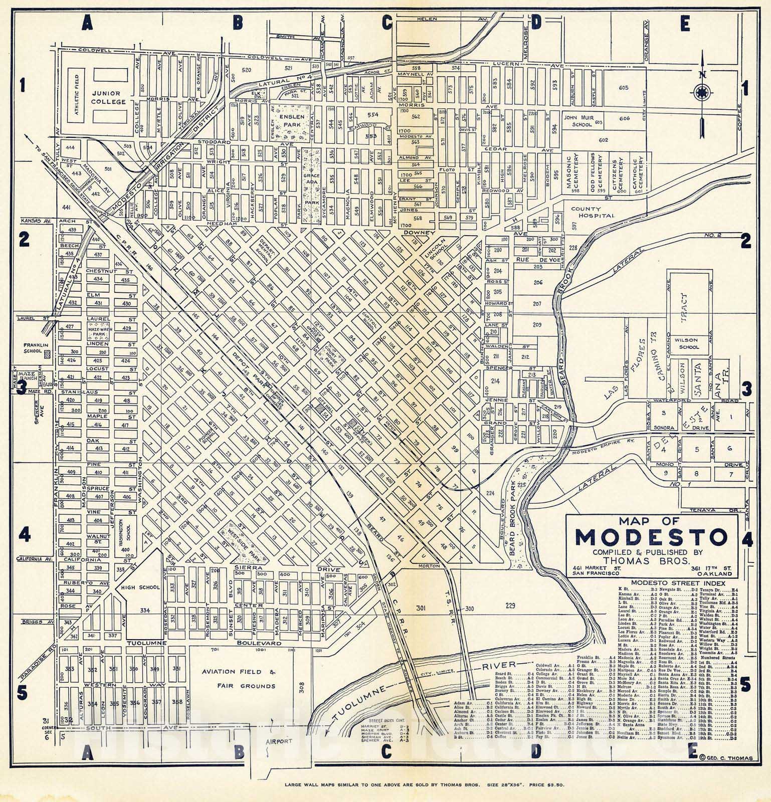 Historic Map : 1938 Map of Modesto, California, Compiled